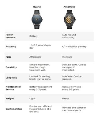 QUARTZ VS AUTOMATIC WATCHES : KEY DIFFERENCES