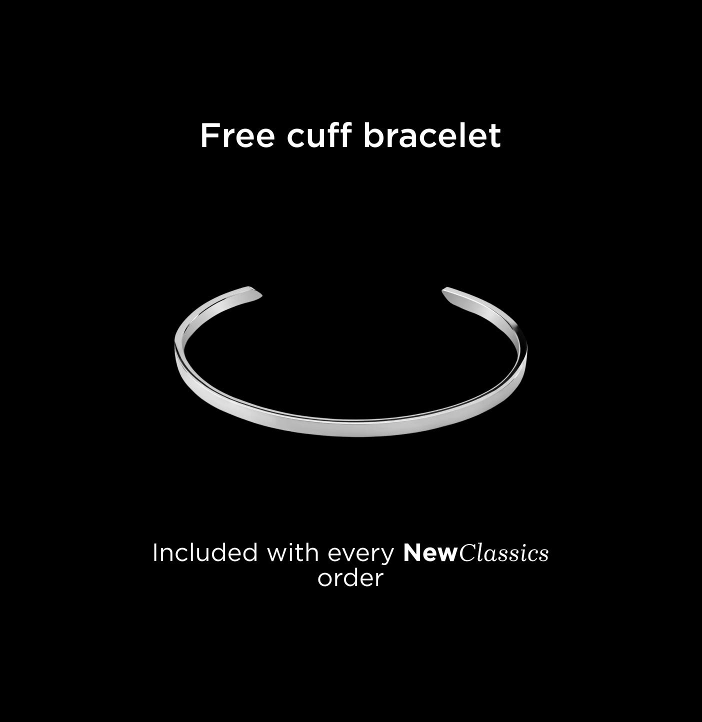 Pick any NewClassics jewellery on this page and your free cuff is added automatically. No minimum, no code. Just a clean stainless steel essential on us to celebrate our new collection.