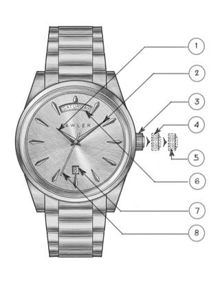 Set the weekday: Move crown to position 4 and turn clockwise.